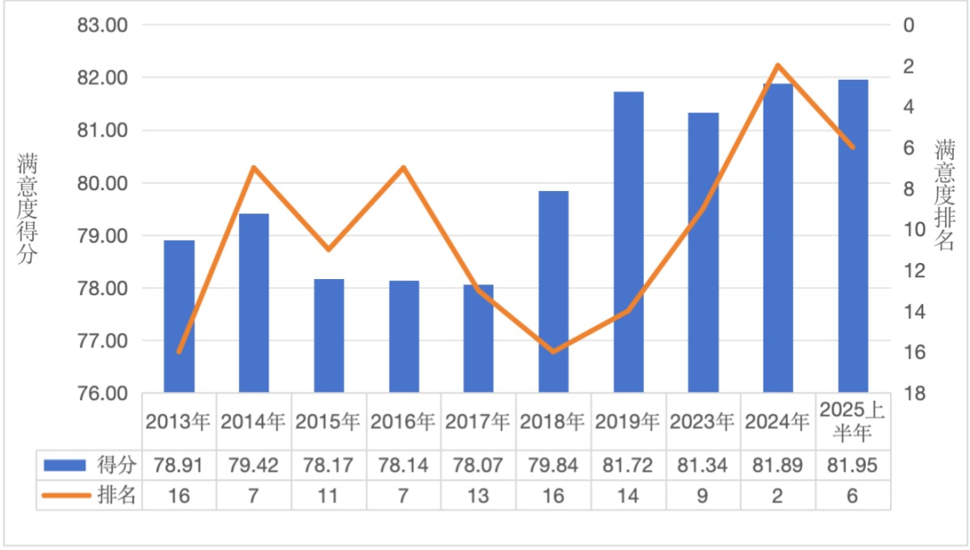 大陆居民赴台湾旅游者满意度(2013-2025上半年