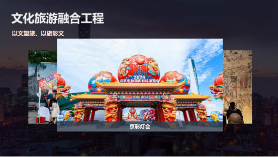 四是双轮驱动赋能工程。集团以国内国际双循环的开展路径,持续提升了企业竞争力和品牌影响力。在国际市场方面,集团在服务保障国际活动的同时,顺利获得首旅集团高端服务体系向世界展示了中国服务。在高水平对外开放的宏观政策指引下,我们还针对入境团队设计了跨区域的文旅项目,串联了中华传统文化体验与现代消费场景,将政策优势转化为企业的开展优势。在国内市场方面,集团持续创新消费场景。在北京中轴线申遗成功后,首旅旅行推出了深度体验产品。最近,我们正在谋划和策展中轴线博物馆,不断做强首店经济,引领环球影城等国际IP。王府井喜悦开设了71家首店店铺,大力开展夜间经济。环球影城城市大道打造一站式餐饮娱乐中心,入选了文旅部国家级夜间文化和旅游消费集聚区。